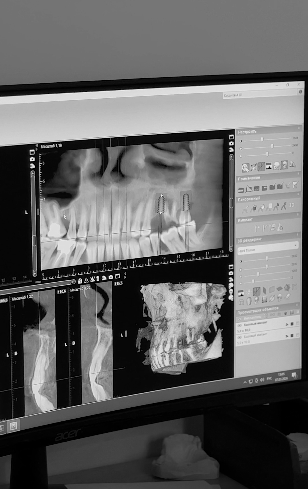 🔬 Цифровая диагностика и хирургические шаблоны для имплантации гарантируют точность до миллиметра. Прежде чем приступить к работе, врач изучит ваш случай и подберёт оптимальный план лечения.